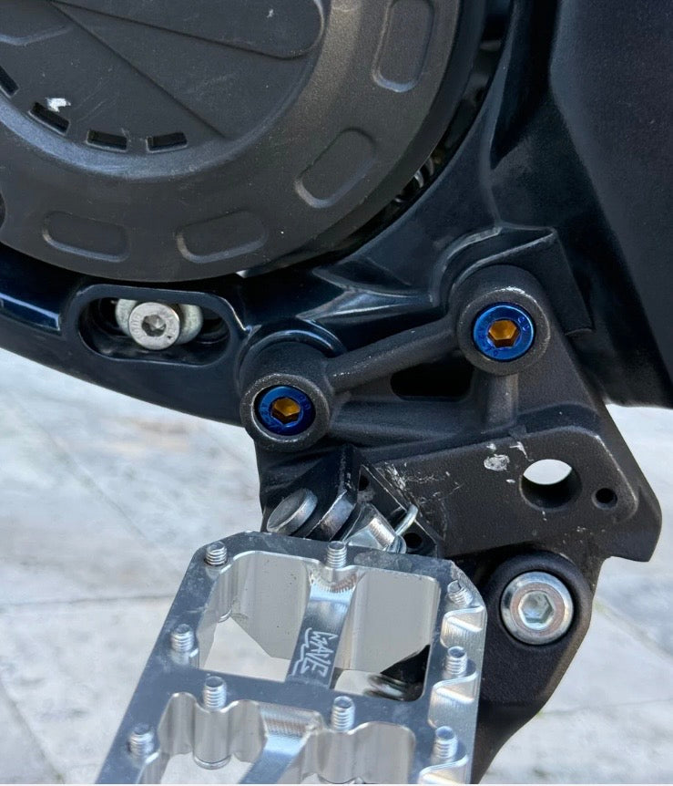 Titanium peg bracket bolts for the Surron, Segway, 79 Bike, E-Ride Pro, Talaria x3/mx3,4,5, Altis, SRPNT, Rerode, and other e-moto style bikes.